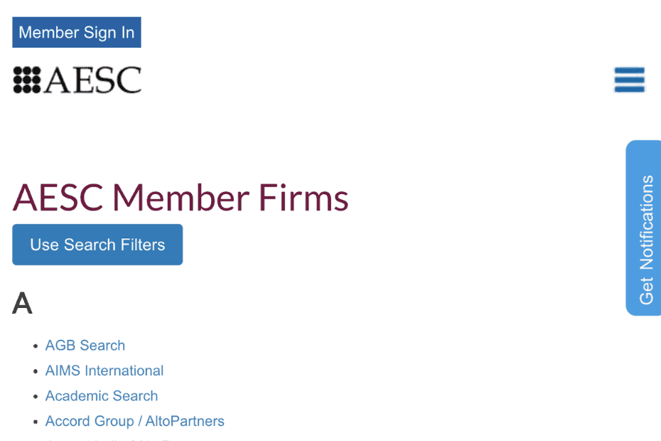 AESC Retained Search Firms List
